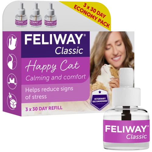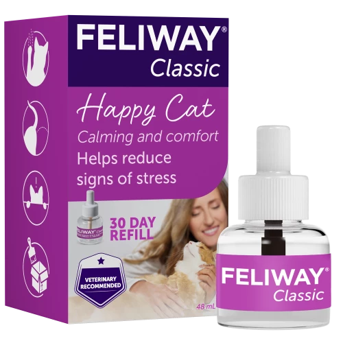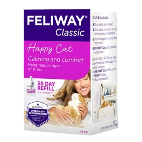 To be used with the Feliway Classic Plug-in Diffuser unit. Available in 48ml refills that last 30 days.