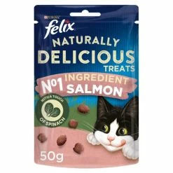 Felix Delicious Treats Salmon Cat Treats are made with quality salmon as the number one ingredient and with a touch of spinach, are a great opportunity to share a wonderful moment together!