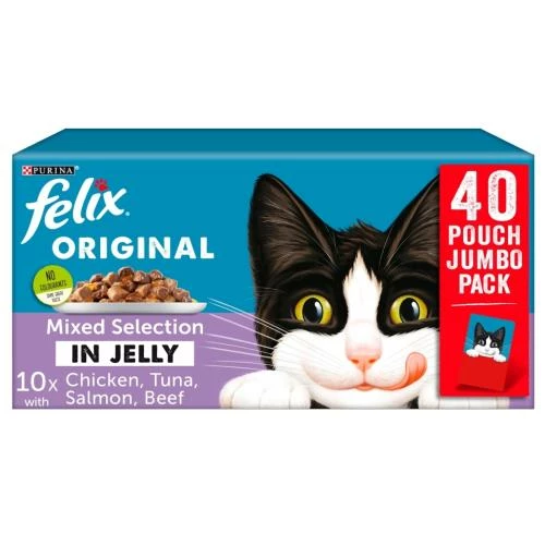 Individually foil sealed to keep in the taste cats love, each pouch is a perfect balance of delicious flavour & convenience; just snip it open, pour out the succulent meaty chunks smothered in jelly, & let your cat become a Felix cat! With a mouth watering selection of flavours like Beef, Chicken, Tuna, and Salmon & Trout, Felix cats are spoiled for choice!