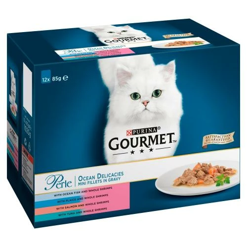 Gourmet Gold Perle Ocean Delicacies are nutritionally complete & delectable recipes to tickle the fancy of even the most highly refined cat connoisseur. Treat your furry sophisticate every day with exquisite morsels of fish, cut into fine fillets & gently cooked in their own juices for a delight even the most discerning feline won’t turn their nose up at!