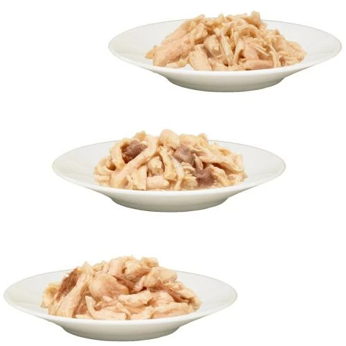 Ingredients (Chicken breast with beef in sauce): Chicken breast (56%), beef steak (4%), cassava extract