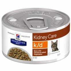 Hills Prescription Diet KD Chicken & Veg Stew Wet Cat Food is a delicious stew flavoured with chicken & vegetables, chopped into bite sized chunks and cooked gently to perfection. Perfect for supporting your cat’s kidney function and helping to sustain muscle mass.
