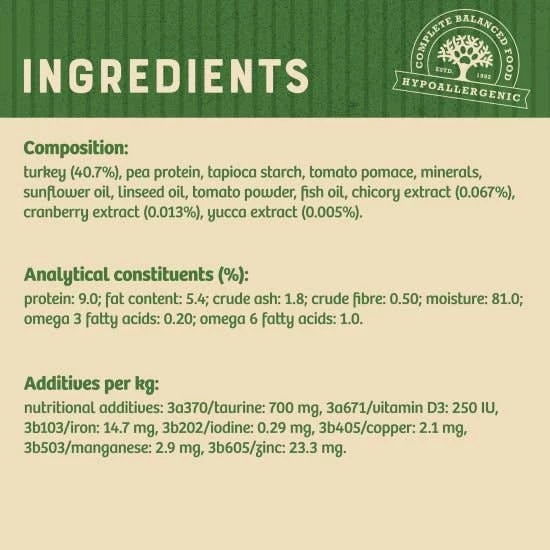 James Wellbeloved™ Grain Free Kitten Wet Cat Food is naturally hypoallergenic and ideal for kittens with skin and stomach sensitivities. The recipe is made with nourishing ingredients and 100% natural turkey, with added vitamins and minerals to care for your kitten’s health and well-being as they grow.