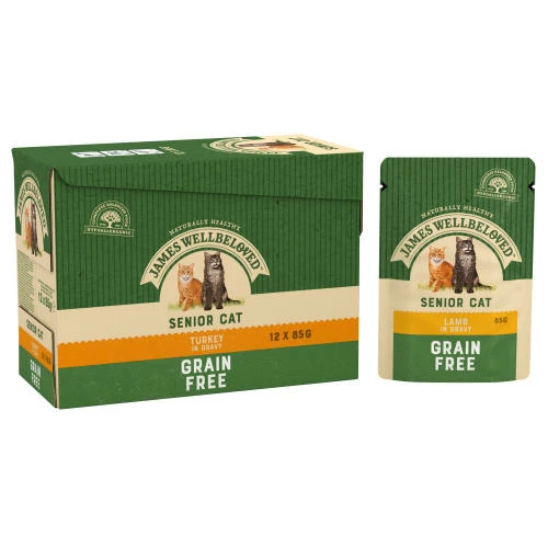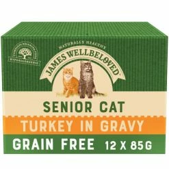 James Wellbeloved Grain Free Turkey Senior Cat Pouches contains unique ingredients that are easily digestible and hypo-allergenic. A complete dietetic wet food with the selected protein source (turkey) and selected carbohydrate sources (potato and cassava), excellent for the reduction of ingredient and nutrient intolerances.