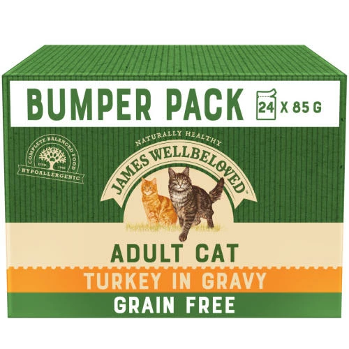 James Wellbeloved Grain Free Turkey Adult Cat Pouches contains selected protein sources (turkey) and selected carbohydrate (potato and cassava) for an excellent taste your cat will love.