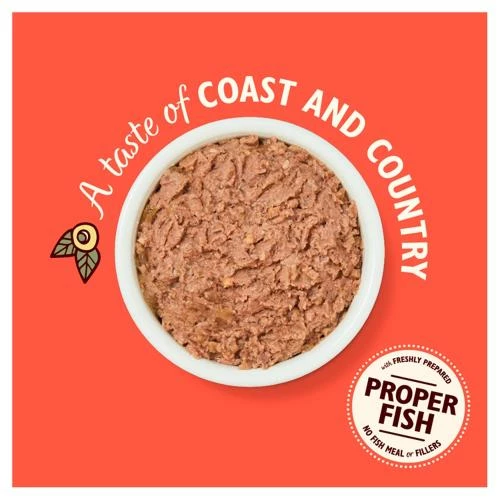 Lilys Kitchen Salmon & Chicken Pate Complete Wet Cat Food is a superb selection of the best that the coast and countryside has to offer with a rustic, chunky pâté texture that your cat will adore. Made with 65% freshly prepared salmon, prawns, chicken and pork, it’s a satisfying combination that will have your cat licking their lips before you’ve even opened the tray! This is a grain free meal, full of vitamins like Taurine!