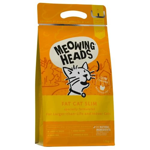 Meowing Heads Fat Cat Slim Adult Cat Food has been specially formulated for larger-than-life and indoor cats.