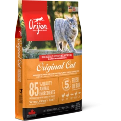 Orijen Original Cat & Kitten Food has been crafted to help your cat thrive with the power of protein-rich recipes that provide peak nourishment. As obligate carnivores, modern cats are built like their ancestors and thrive on a Biologically Appropriate diet rich in protein and fat sourced from a variety of animal ingredients.