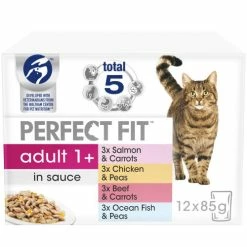 Perfect Fit Mixed Pack Wet Adult 1+ Cat Food is a delicious assortment of pouches that have been formulated to meet the specific needs of adult cats. Complete & balanced nutrition to sustain your cats vitality and is supplemented with B Vitamins & Iron to maintain your cats agility. All of our Perfect Fit wet cat food recipes have been developed with our nutritionists and veterinarians of the Waltham Centre for Pet Nutrition to guarantee 100% complete, balanced and advanced nutrition.