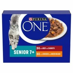 Purina ONE Senior 7+ has been formulated for the mature cat who loves succulent fillets of chicken and beef.