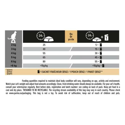 The diet provides all the nutrients your cat needs for day-to-day vitality and long-term health. The formula has been expertly balanced to help sterilised cats stay in healthy condition throughout their adult years. The protein, fat and carbohydrate levels have been specially adapted to help maintain ideal body weight in sterilised cats. The crunchy kibble texture is proven to protect teeth from plaque and tartar build-up.
