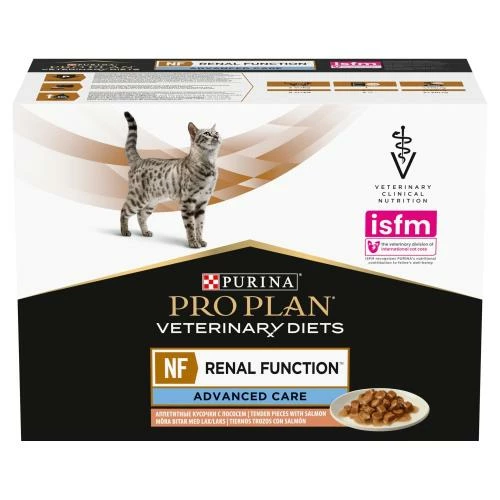 PRO PLAN VETERINARY DIETS Feline NF Renal Function Advanced Care Cat Food is a delicious clinical diet, formulated to provide complete nutrition for cats afflicted with renal failure. A balanced pet food with restricted levels of phosphorus and sodium, Feline NF works to hinder progressive renal damage, whilst high quality, carefully controlled proteins aid in the reduction of uremic toxins.