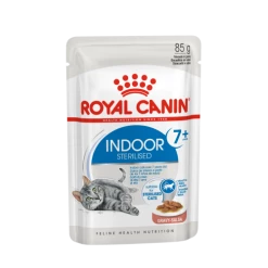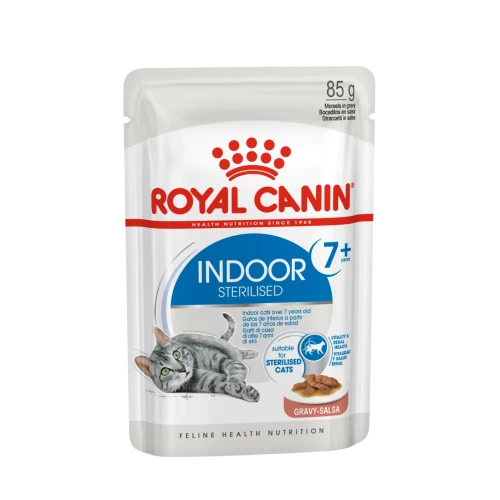 Royal Canin Indoor Sterilised 7+ in Gravy Wet Adult Cat Food is a complete feed that’s been formulated specifically for sterilised indoor cats over 7 years old.