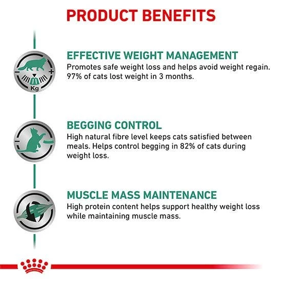 Royal Canin Satiety Cat Food: Weight Loss Support Veterinary Health Nutrition is an adapted macronutrient profile which helps provide safe weight loss and avoid weight regain.