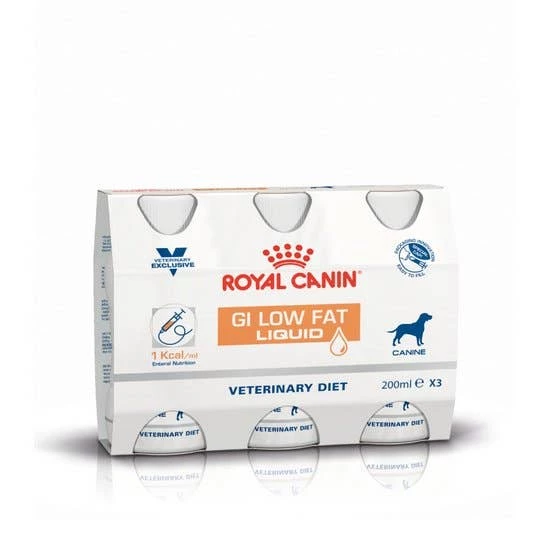 GI Low Fat Liquid provides your dog with complete and balanced nutrition. This tailor-made formula contains a reduced fat content for dogs that require a fat-restricted diet. Thanks to its synergistic antioxidant complex, GI Low Fat Liquid helps to support your dog’s natural defences. It contains a specially adapted energy content and density, so your dog gets their required daily energy intake in a reduced volume of food and supports easy tube or syringe feeding. It is also highly palatable, which helps maintain your dog’s appetite, and encourages spontaneous eating through convalescence and recovery. As part of the ROYAL CANIN® Veterinary Range, this product must only be given to your pet when recommended by a veterinary professional.
