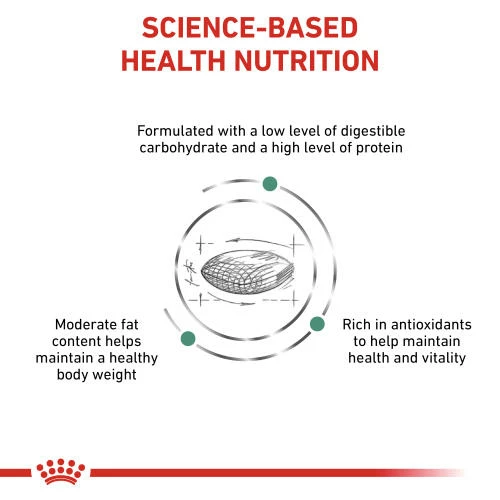 ROYAL CANIN Feline Diabetic is specifically tailored with the needs of diabetic adult cats like yours in mind. This exclusive formula is developed with reduced levels of starch, from sources with a low glycaemic index. Food with a low glycaemic index cause a slower rise in blood sugar than foods with a high glycaemic index. This ultimately supports your cat by helping to manage postprandial blood glucose (the sugar in your cat’s blood after eating) in diabetic felines. Thanks to ROYAL CANIN Feline Diabetic’s high level of protein, this diet helps to maintain your cat’s muscle mass, which is essential for diabetic cats. Helping your cat to manage a healthy body weight supports a better response to diabetic treatment, as overweight cats tend to be less sensitive to insulin’s effects. As part of the ROYAL CANIN Veterinary Range, it is important that this product is only given to your pet when recommended by a veterinary professional.