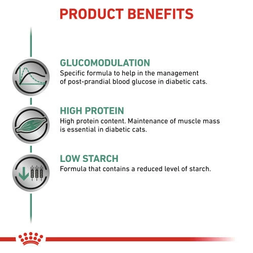 - Helps reduce net energy supply and maintenance of muscle mass essential in diabetic cats