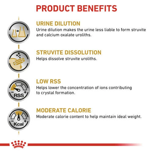 Royal Canin Veterinary Diets Urinary SO Moderate Calorie Cat Food is a complete dietetic feed for cats formulated to combat Idiopathic cystitis, Struvite urolithiasis, Struvite and calcium oxalate urolithiasis whilst providing a controlled calorie intake.