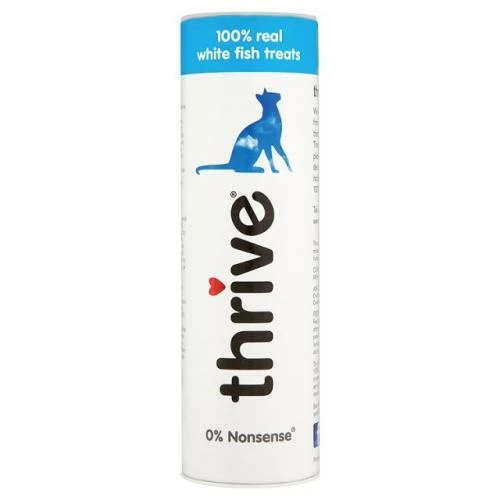 Our cats love thrive treats beacuse they are really pieces of meat and fish. Thrive treats are not made with any derivatives or other rubbish, nothing sugary or fattening. We love the reaction we get from our cats when we give them thrive treats