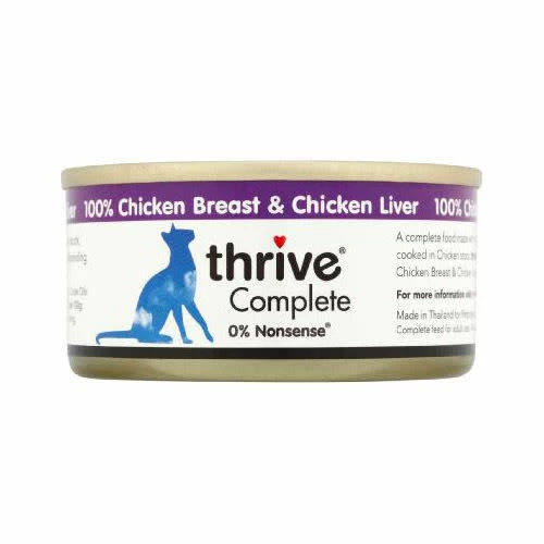 Thrive Chicken & Liver is a complete nutritionally balanced meal for your cat. Made from 100% Chicken & Chicken Liver in chicken broth, this is real, pure chicken, not ‘meat/animal derivatives’ and is filled with vitamins and minerals that is easy to prepare and digest.Â