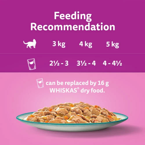 Whiskas 1+ Catch of the Day Mix in Gravy Wet Adult Cat Food is lovingly prepared with moist, real looking flaked pieces that will keep your cat coming back for more. Naturally, it’s irresistibly good, as every recipe has all the nutritional ingredients cats need to be at their beautiful, unique, best.