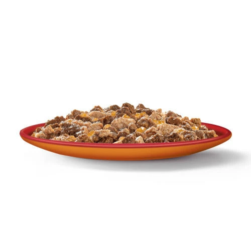 - Adult cat food containing four irresistible meaty combinations: Beef & Poultry, Lamb & Duck, Chicken & Liver, Turkey & Game