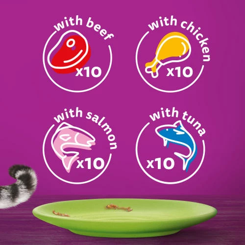 Cat lovers know that purring is the best sound you can hear. This delicious wet cat food recipe makes millions of cats around the world rush to their bowls with purring excitement and lickingly-good satisfaction. Prepared with love and care, cat food pouches are nutritionally balanced to ensure your cat has everything they need to keep them purring.