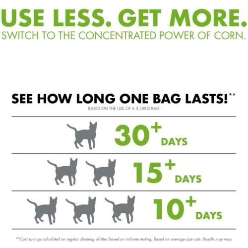 Worlds Best Cat Litter Original Clumping Formula has outstanding odour control and tight clumping ability, World’s Best Cat Litter Original Unscented formula harnesses the power of  naturally absorbent corn to deliver 2X longer lasting performance than the leading US litter brand. This naturally safe solution allows cat lovers like you to smell less, clean less and buy less. This formula is ideal for homes with 1 or 2 cats.